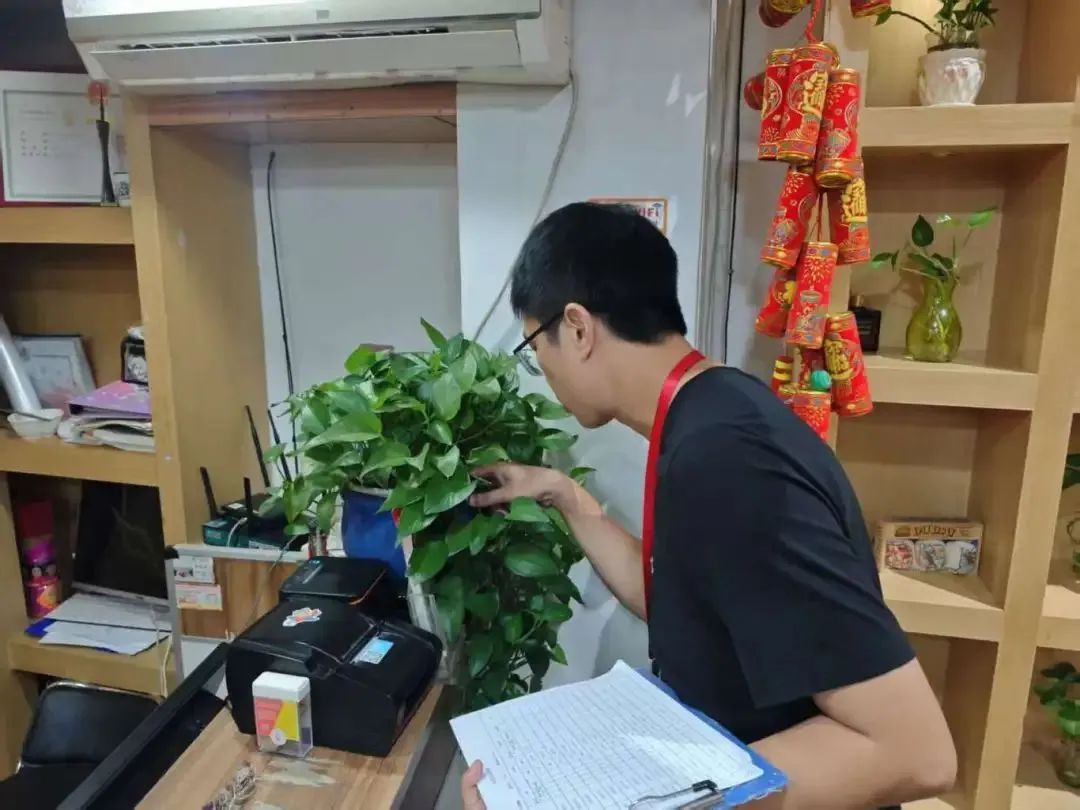 夏洋社区工作人员常态化对辖区周边商铺进行走访巡查,无论是装饰的绿植、堆积的杂物,还是容易积水的容器都仔细排查,发现问题及时提醒和帮助商户进行整改,并耐心分析“两热”防控形势,宣传实用防蚊灭蚊招,让知识“听得懂、用得上”。