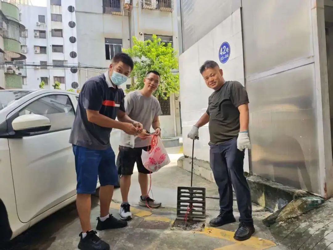 为了让灭蚊药包增强有效性,增长时效性,恒信物业积极分享经验做法,将灭蚊药包系在下水道渠盖上,避免因雨水冲刷等原因影响灭蚊包药性,夏洋社区同步将优秀做法推广到其他小区进行学习借鉴。