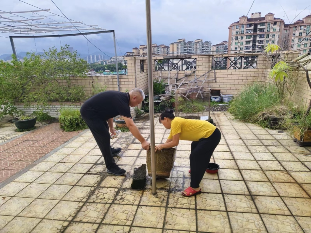夏洋社区各小区物业公司,以人员共通、设备共用、资源共享的方式,对密集场所重点区域加强倒积水和统一消杀灭蚊工作,全面开展翻盘倒灌清积水、清垃圾、开展屋内外消杀和环境卫生整治,彻底清理卫生黑点,消除蚊虫孳生地,有效降低蚊媒密度。