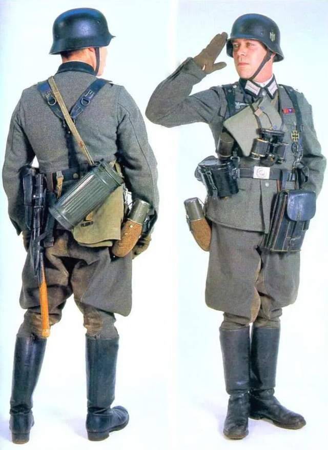 这还得先从一个看似没有关系的方面说起。咱们想想,二战德军是什么形象?大护耳头盔,灰绿色军装,长柄手榴弹,98K步枪,但还有一个东西,不知道你注意过没有,那就是他们挂在后腰上,带着瓦楞条纹的圆柱形物体,这是什么东西?是个饭桶吗?其实,这是一个装着防毒面具的罐子。然而,在欧洲战场上,一直打到德国投降,使用毒气都非常罕见。也就是说,这实际上是个累赘,但还是要一直带着,因为他们可不敢赌啊,根据一战的经验,大家既有使用化学武器的能力,也都有前科,希特勒自己就差点被熏死,万一对方要是用了呢?